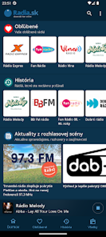 Radia.sk kräver Android 13.0 eller högre. Den nuvarande versionen av appen är 4.0.4 och du kan få den endast på tjeckiska.